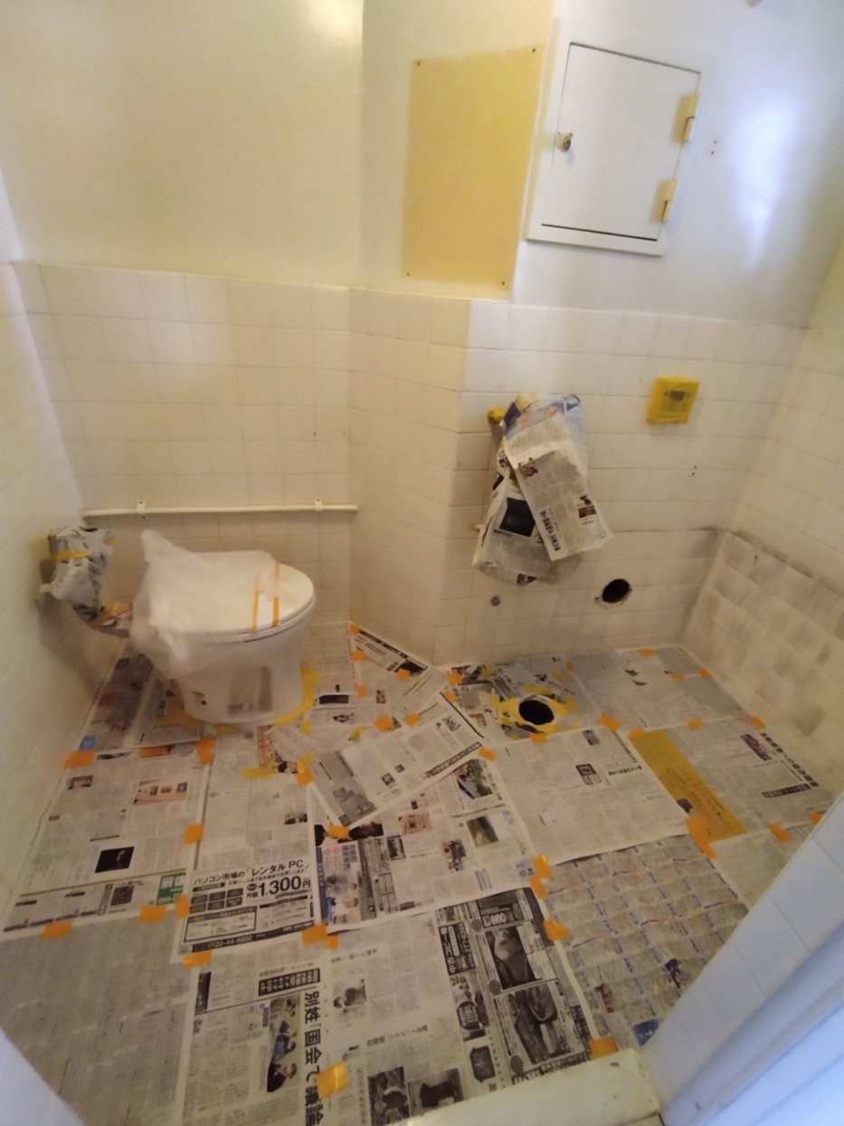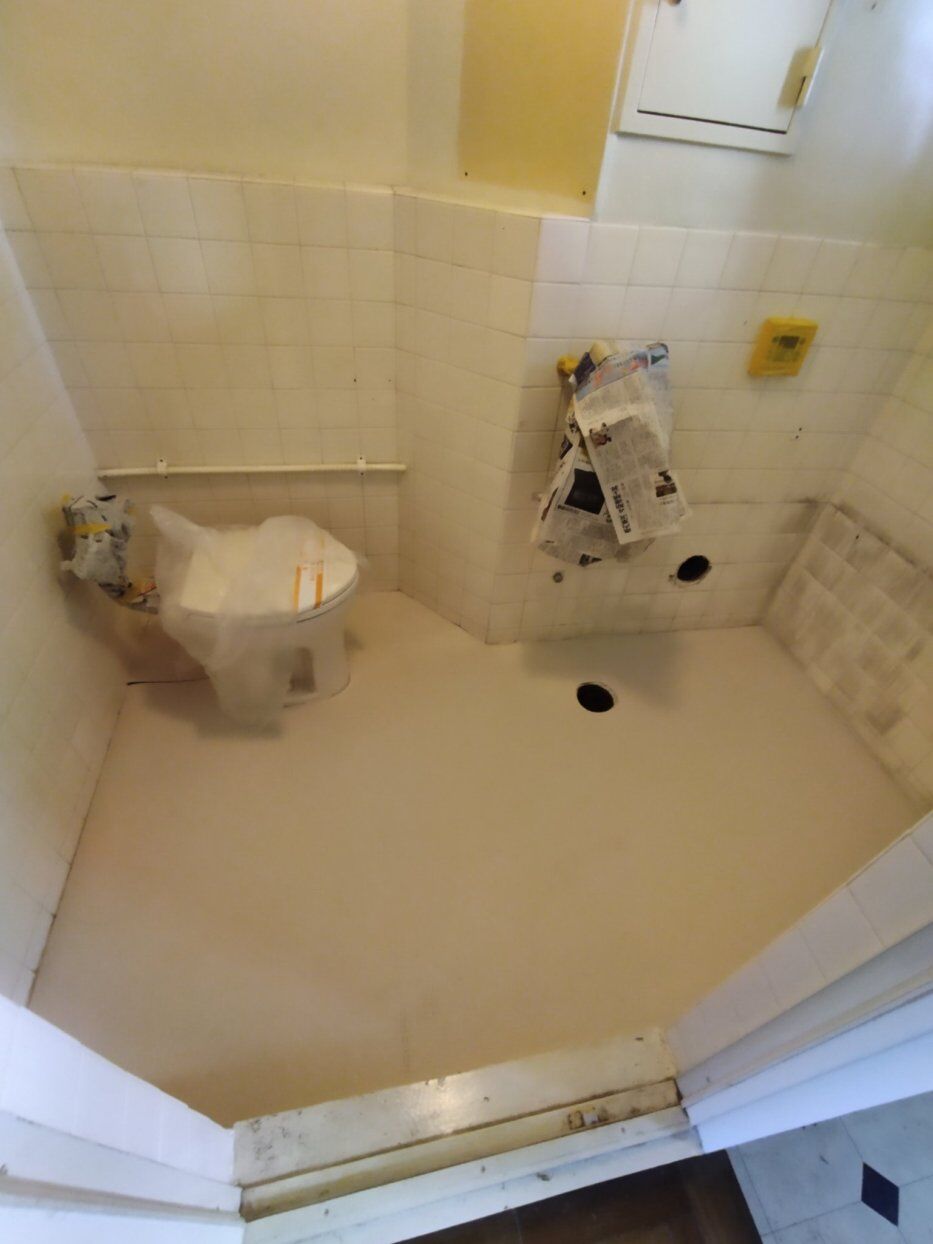 お風呂場の床タイルの上にフロアシートを貼ってリフォーム