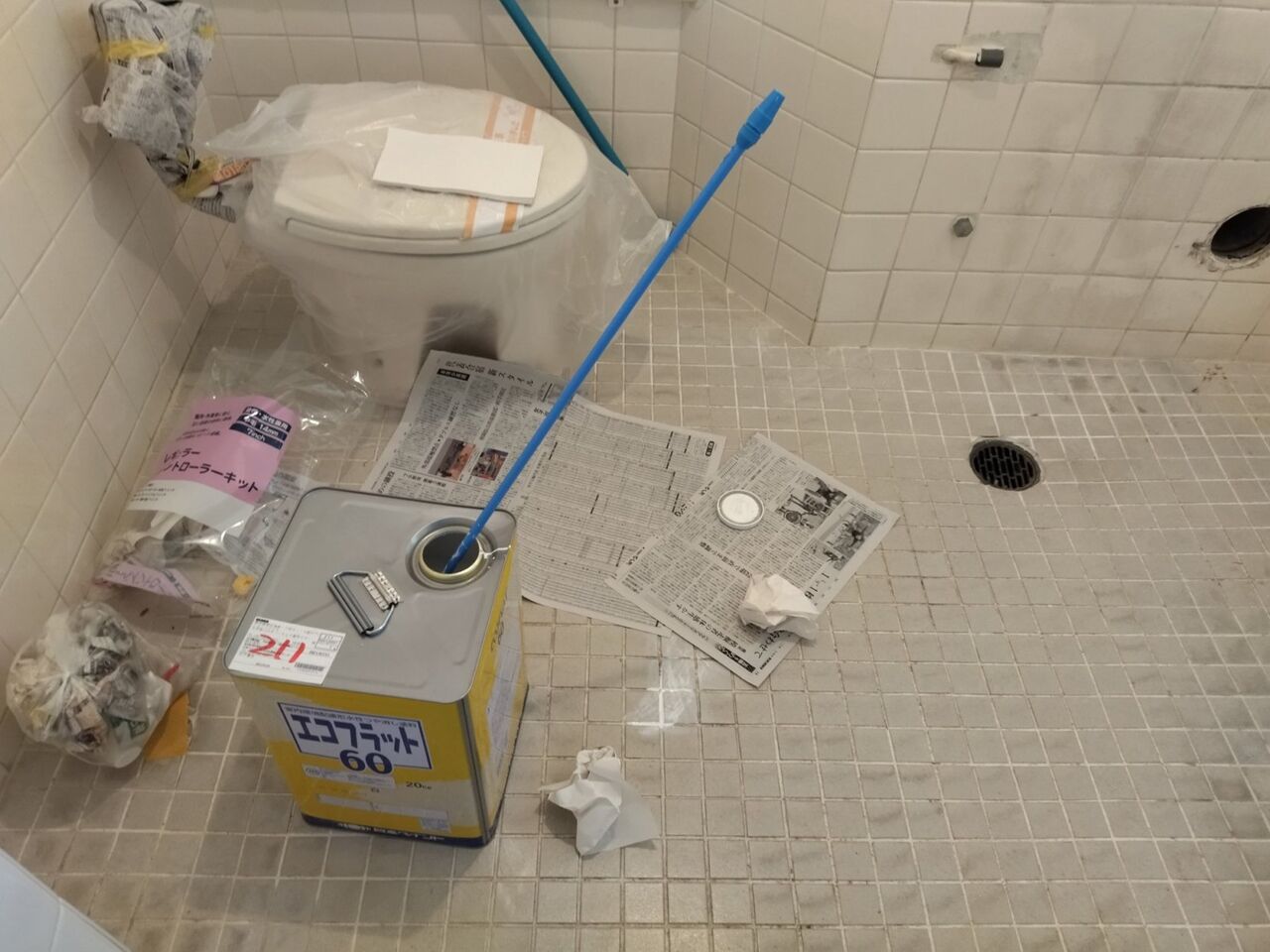 タイルと壁をペンキで塗って