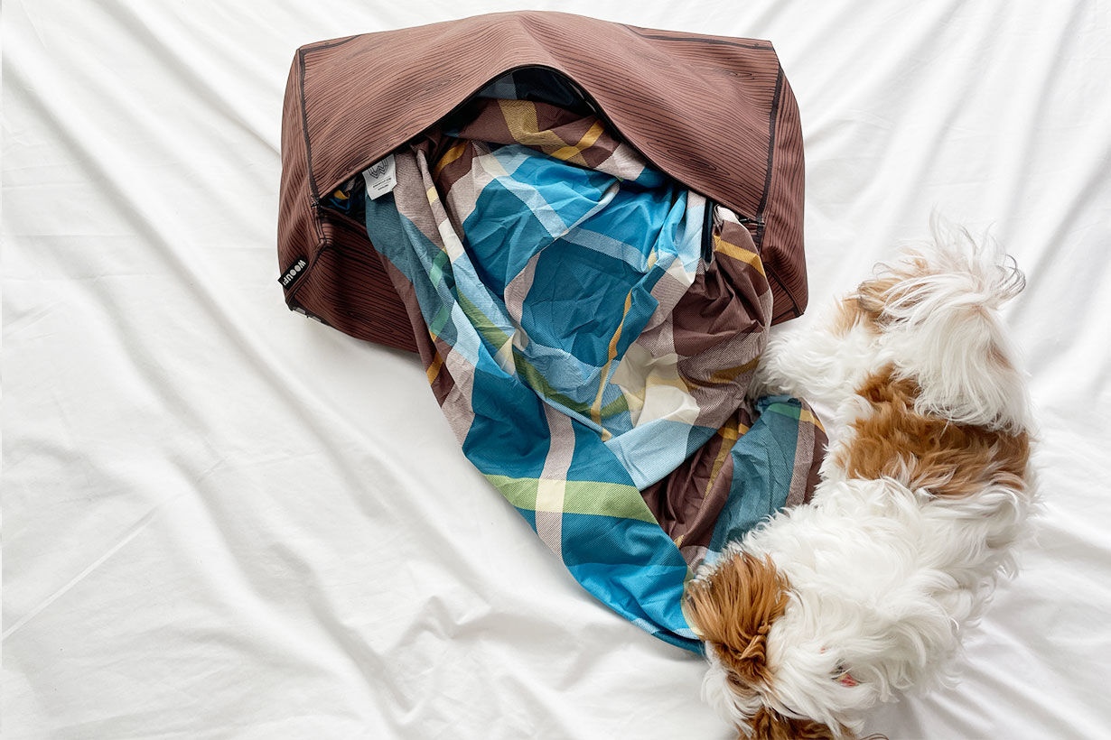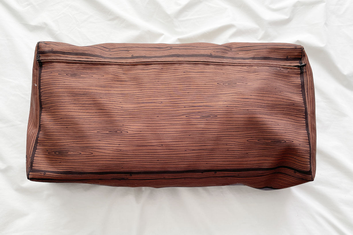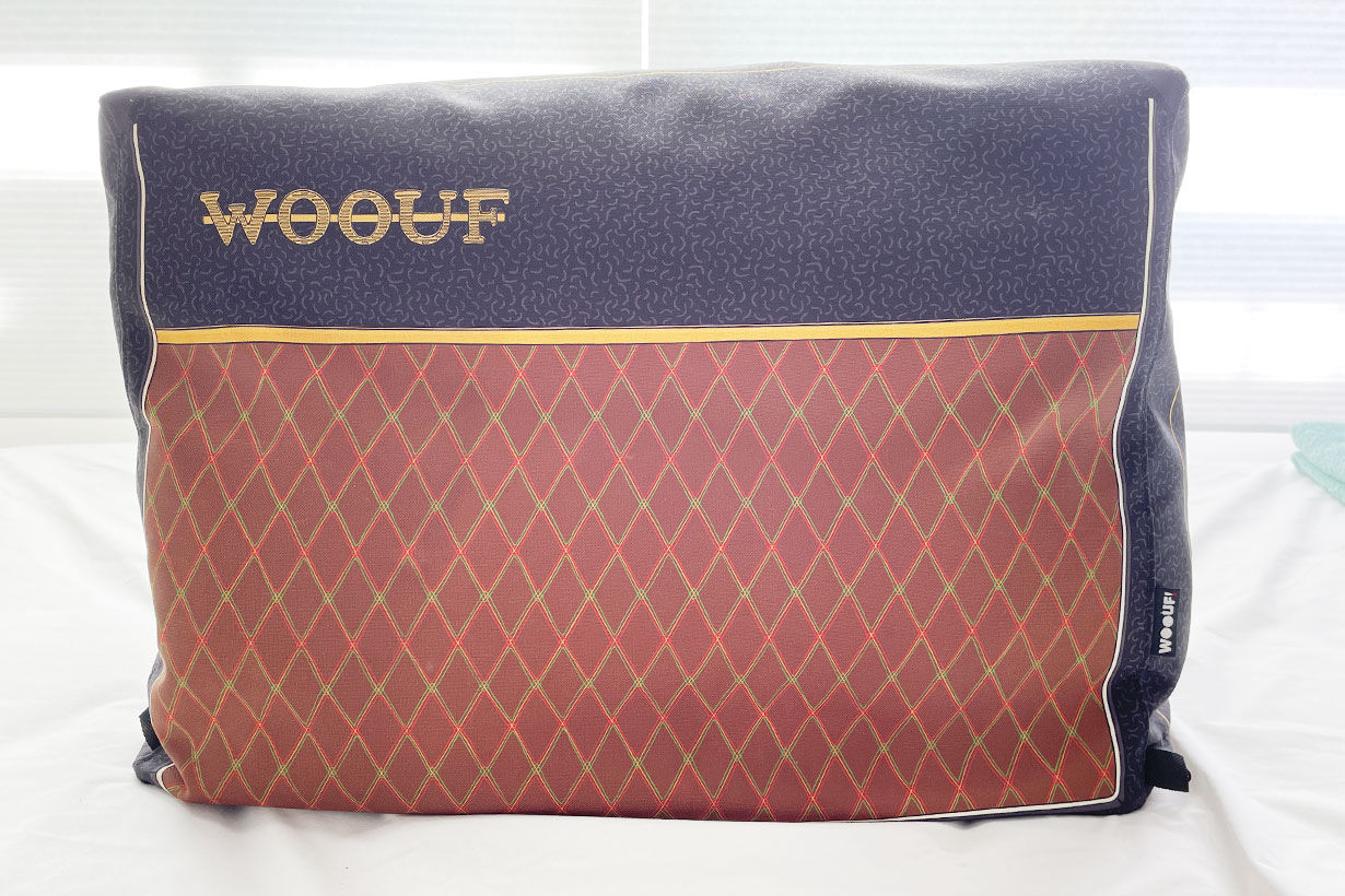 無地選べと前のセンテンスで力説していたのに、我が家は超クセつよな布団収納袋を使用中です。WOOUFというスペインのブランドのもので、現在日本では入手不可能なため、メルカリで中古品が出品されるのを狙い撃ちし、1年ほどかけて揃えました。