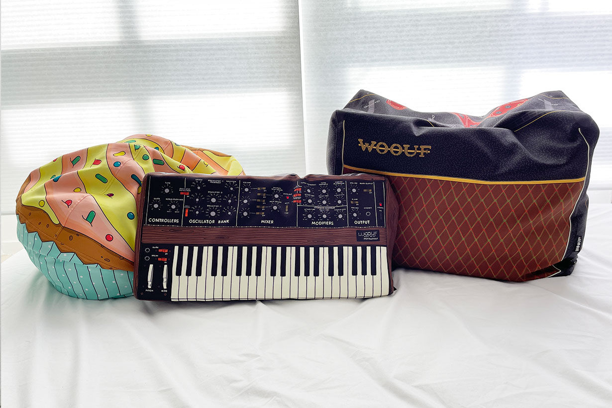 ↓替えのシーツはアナログシンセのクッションカバーに収納