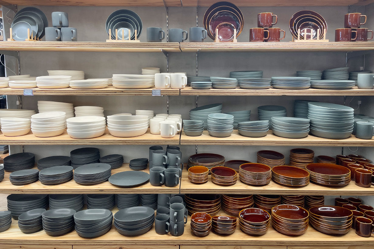 シンプルな食器はサイズも豊富で、思わずセットで買いたくなります。