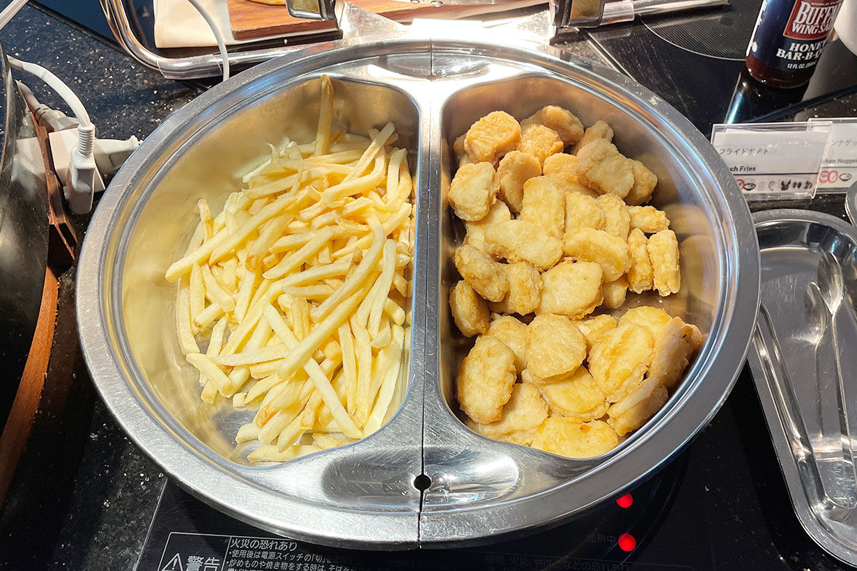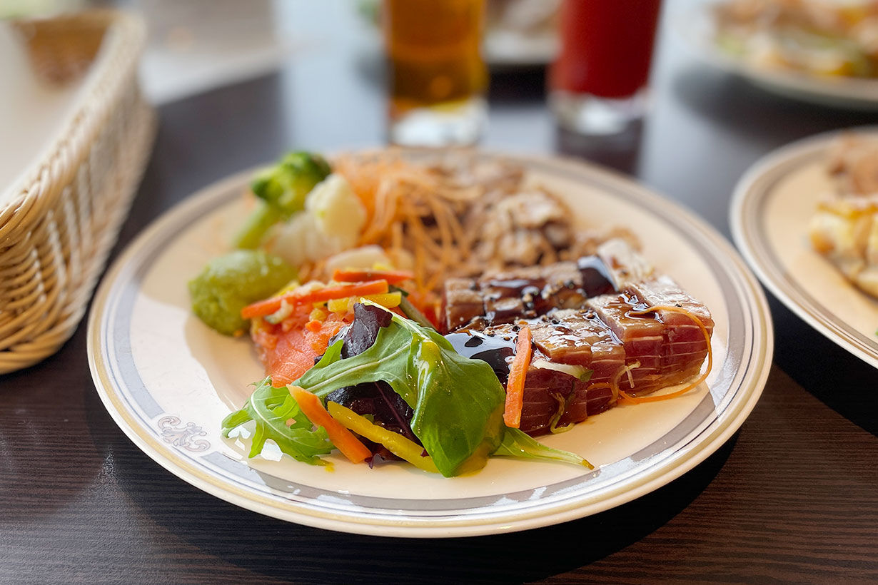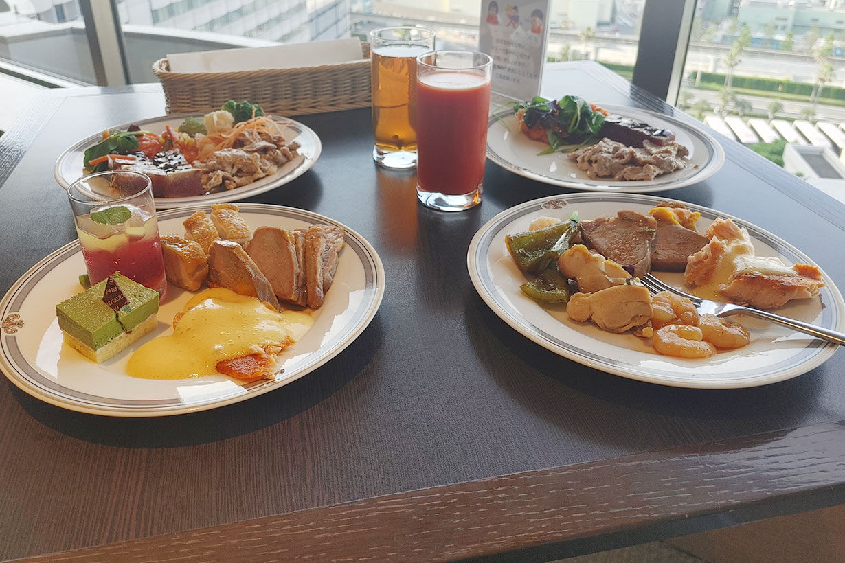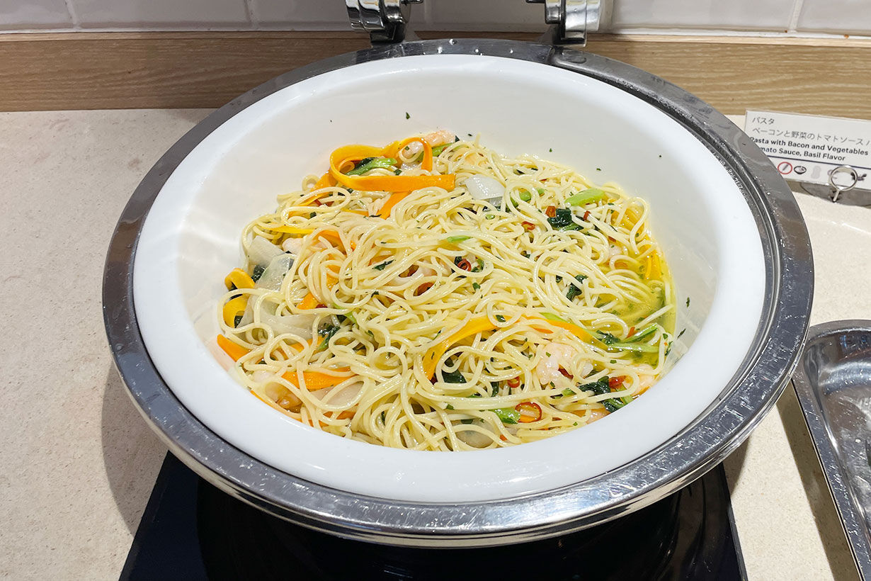 メインディッシュだけで5品以上あり、パスタやカレー、炊き込みご飯、ピザなど、炭水化物系も充実していて、ライトミールどころか、近所の庶民的なホテルのビュッフェよりもはるかに豪華&おいしかったです。