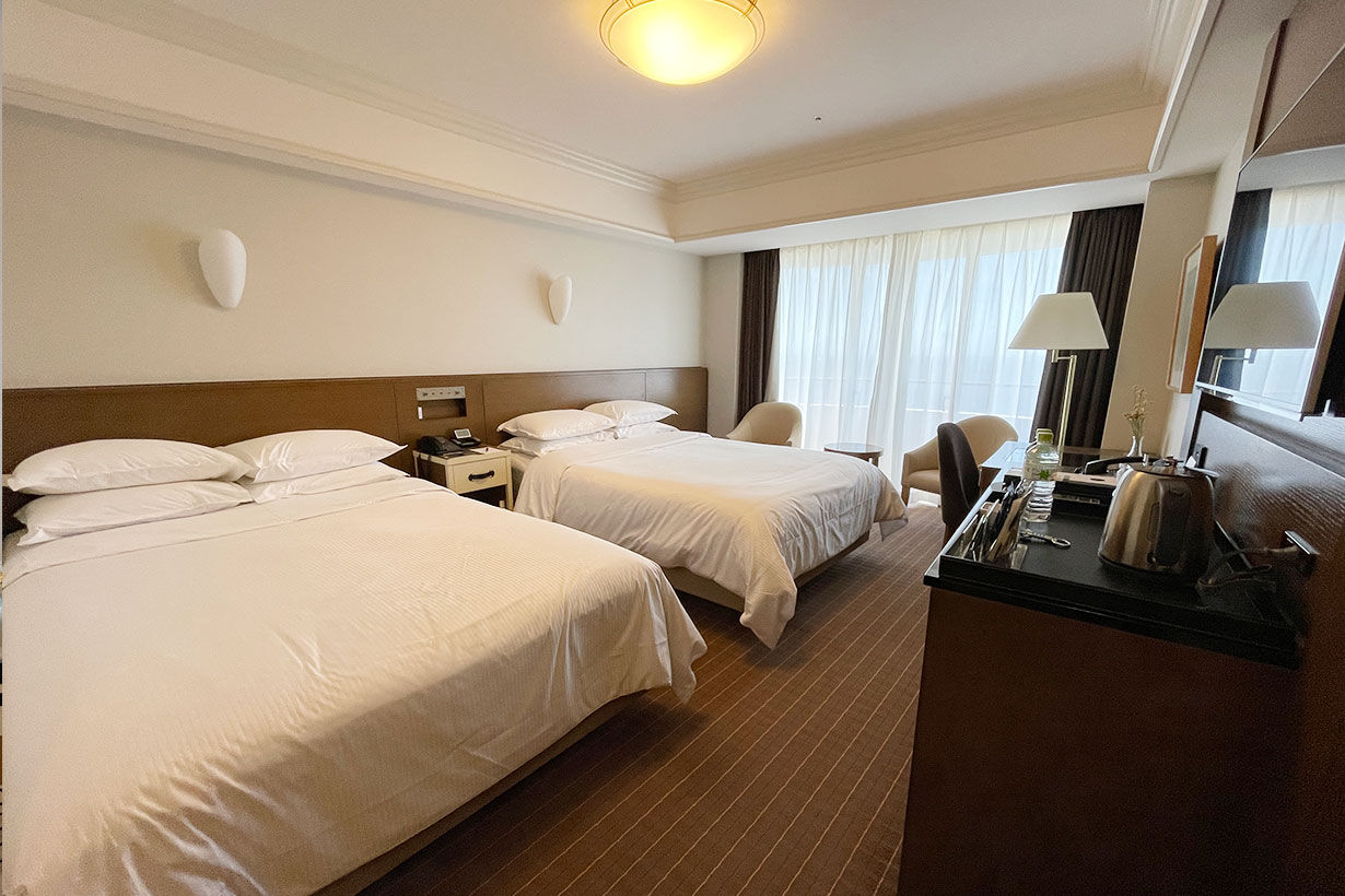 我が家よりも広い30平米以上はあるであろう客室には、ダブルベッドが2台。