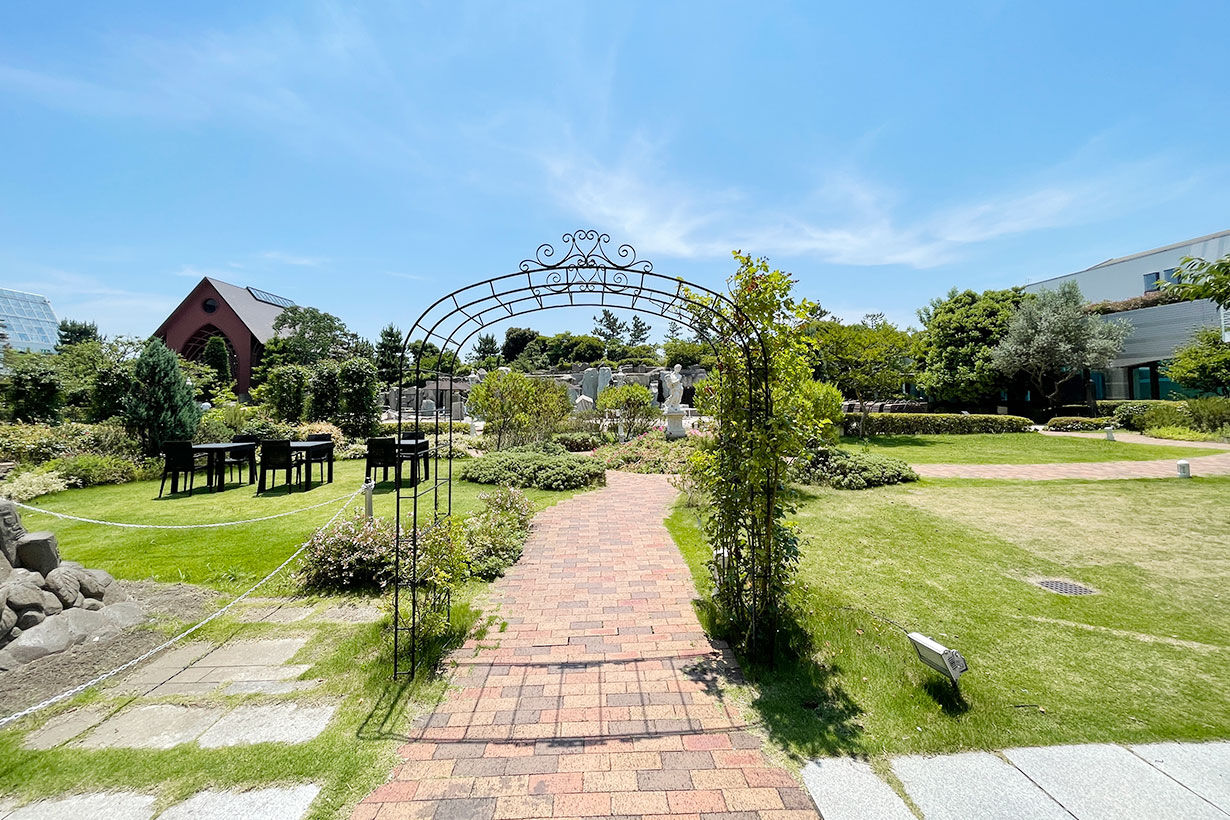 屋外プールのまわりは、手入れされた広い庭園になっていて、散策するだけでも楽しめます。