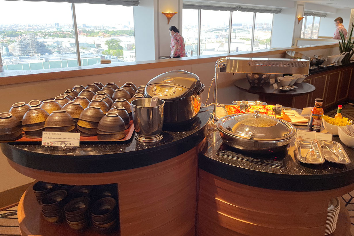 クラブラウンジで食べるか、グランカフェの朝食ビュッフェかを選べます。