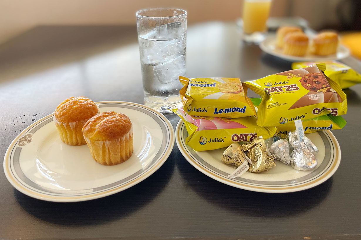 ここぞとばかりに、無料のお菓子を持ってくる貧乏性の私。
