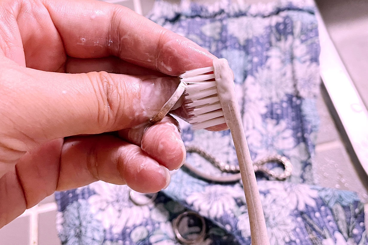 ジフと歯ブラシで銀アクセサリー磨きビフォーアフター