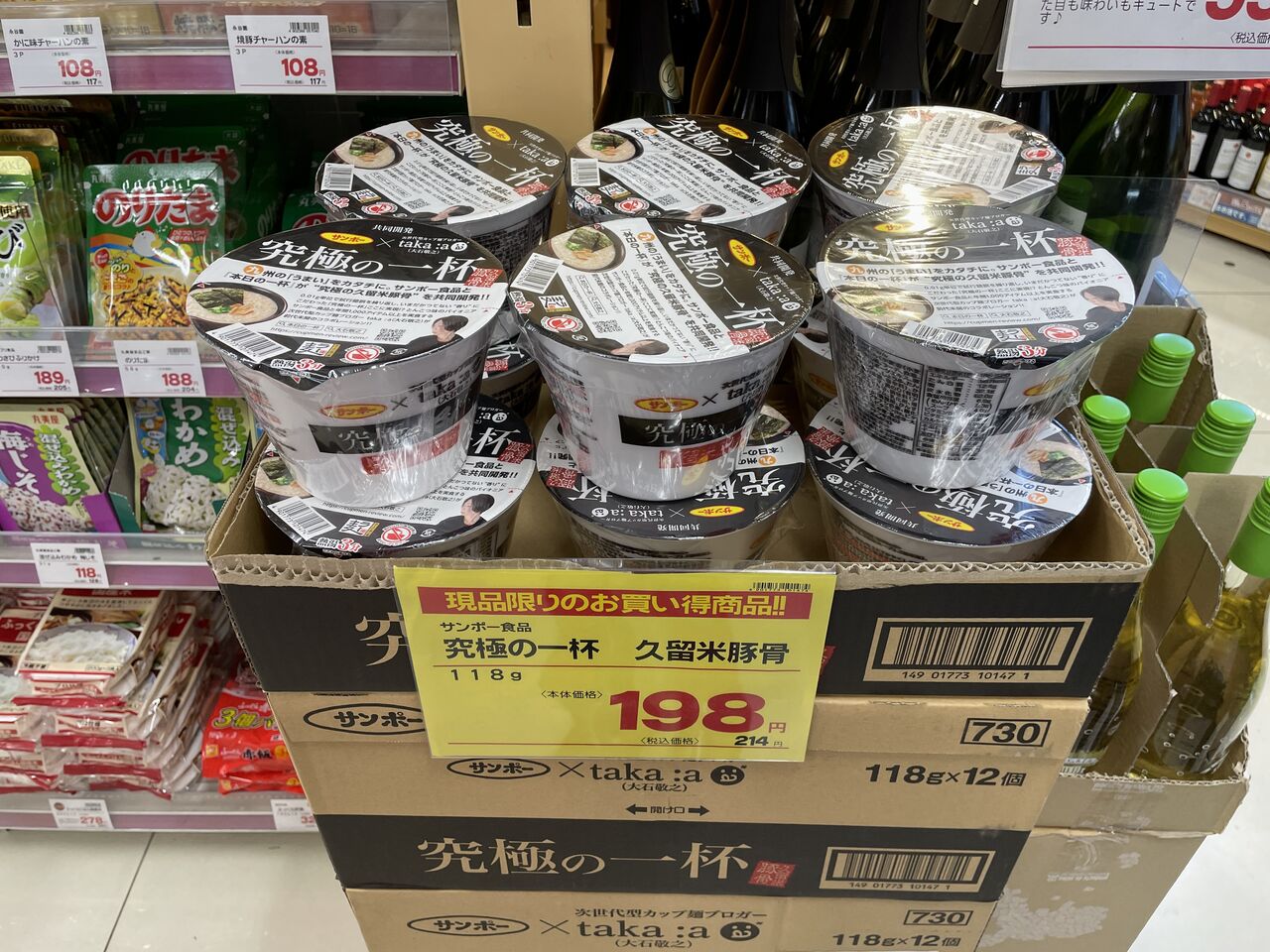 近所のスーパー(ハナマサね)でダンボール積みで売り出し中のラーメンを発見。