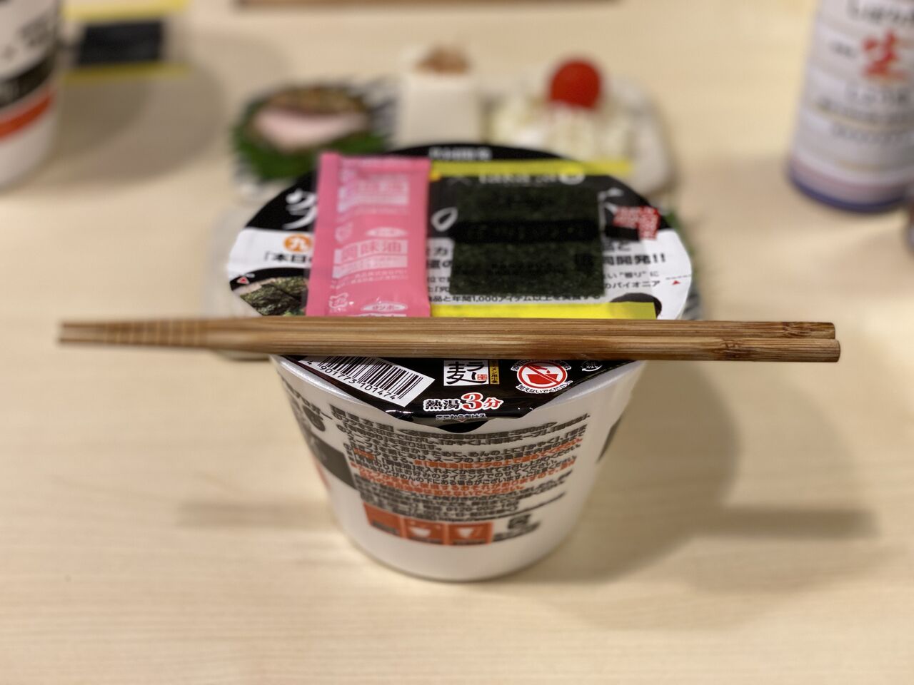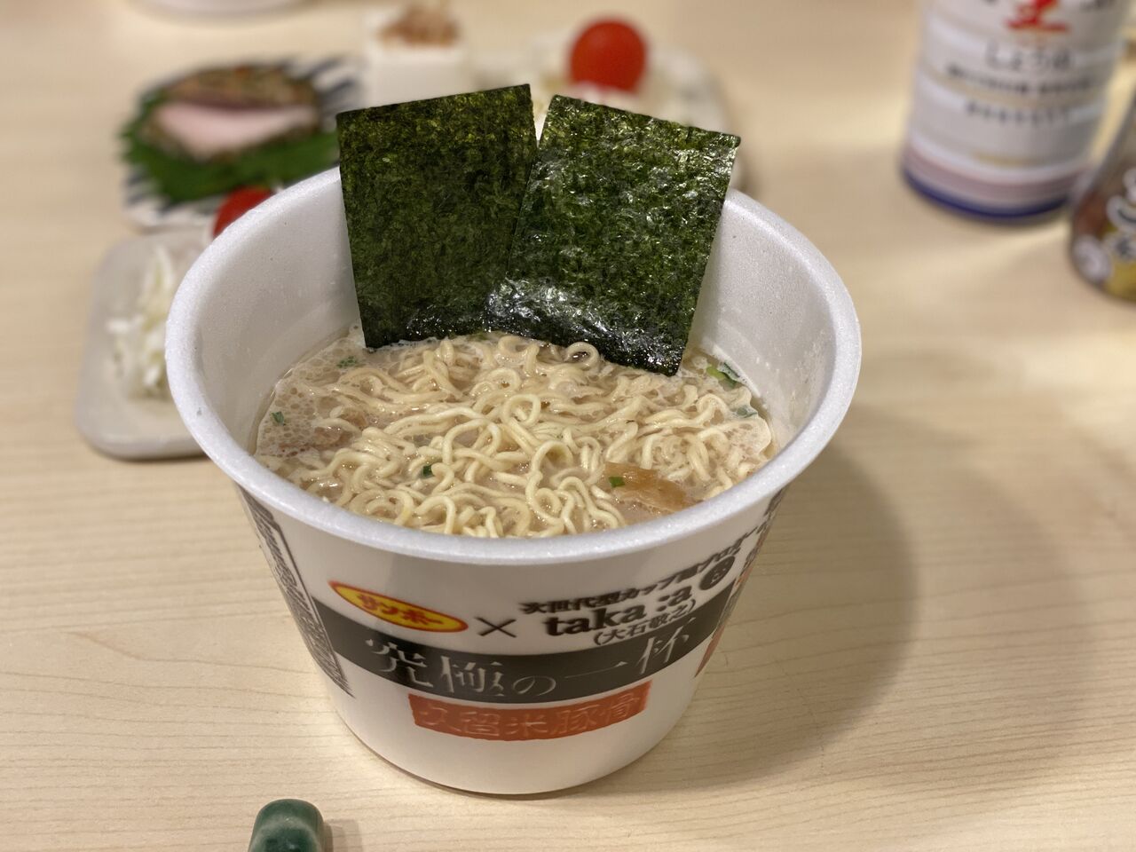 カップ麺の蓋にtaka:aさんの顔がプリントされていました。