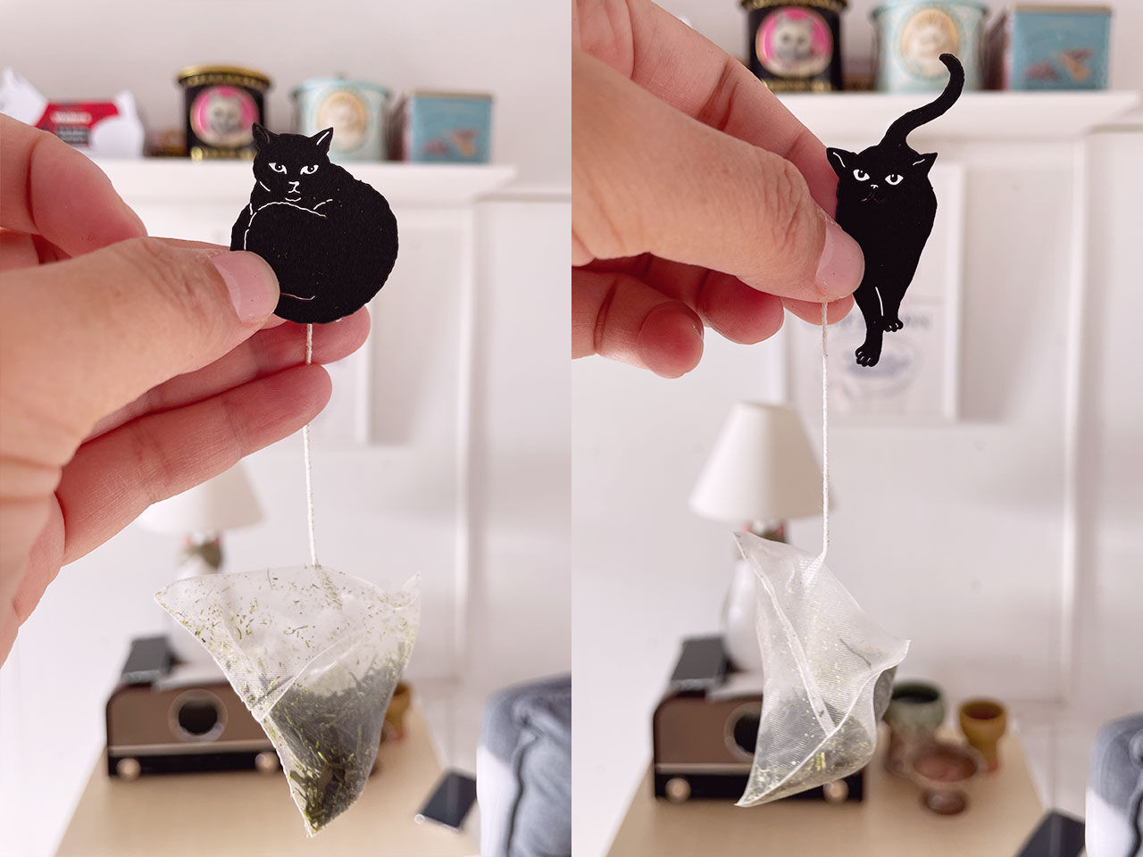 癒し系イラストの紙パッケージだったので「ねこイラストの個包装に入ってるのかな〜」と予想していたら、黒猫の切り絵のタグがついていました。