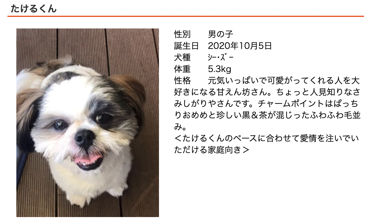 【2023年1月9日追記:たけるくんの里親が決まりました!!ありがとうございました】