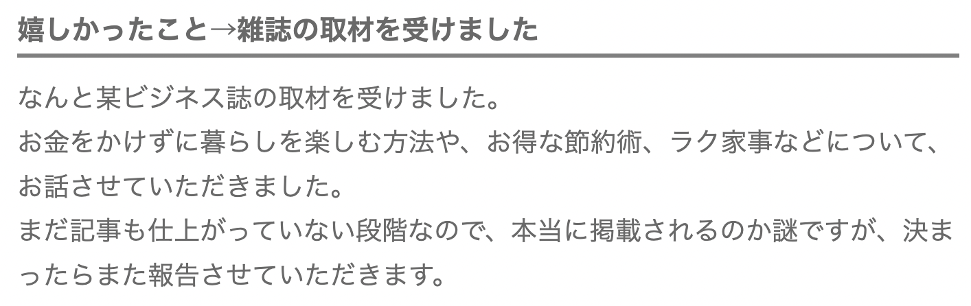 まさかこんな、主婦の日記ブログに、経済誌の超大手「プレジデント」から取材依頼が来るとは思わず、連絡をいただいたときは現実味がありませんでした。