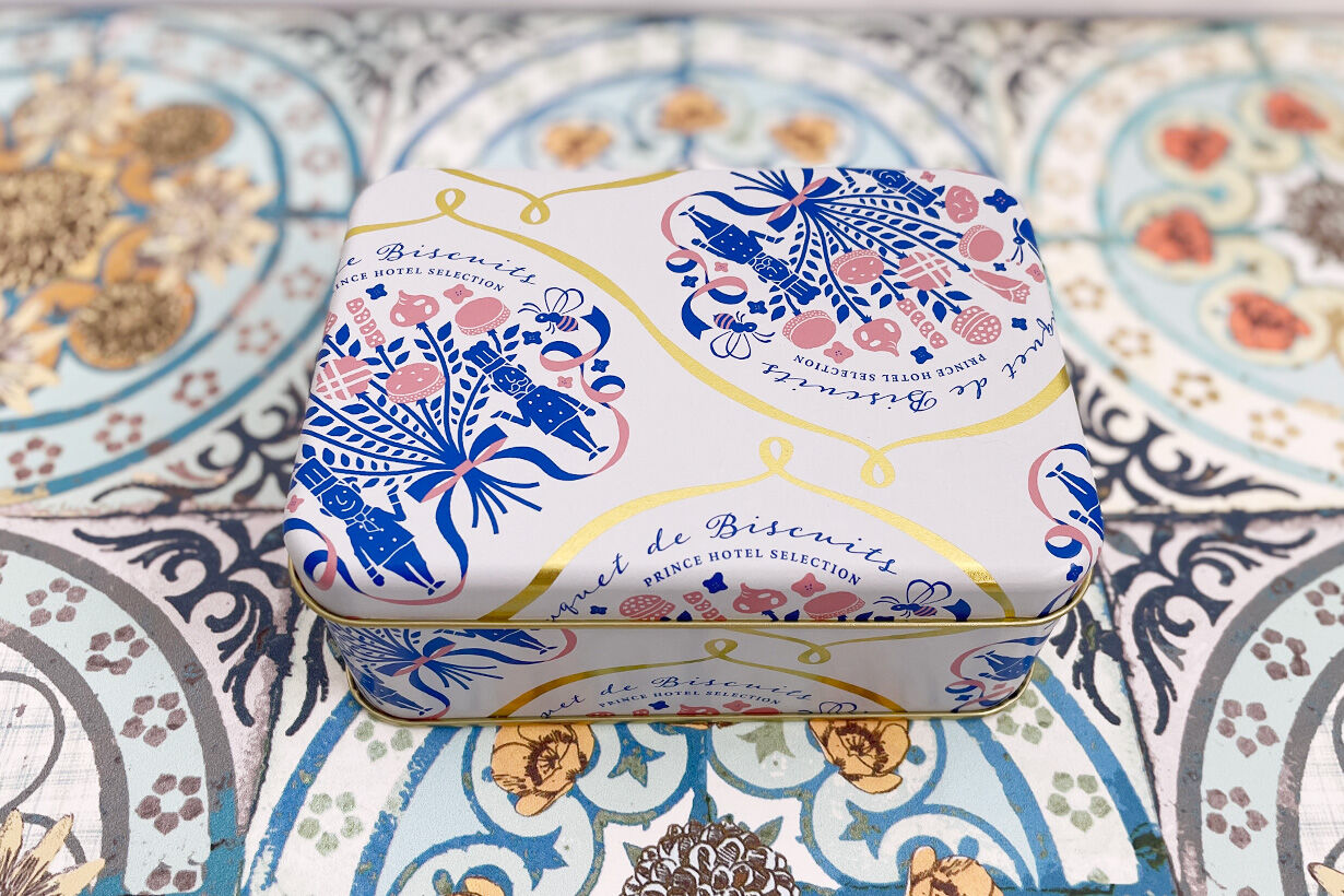 プリンスホテルのクッキー缶「Bouquet de Biscuits(ブーケ・ドゥ・ビスキュイ)S缶」です。