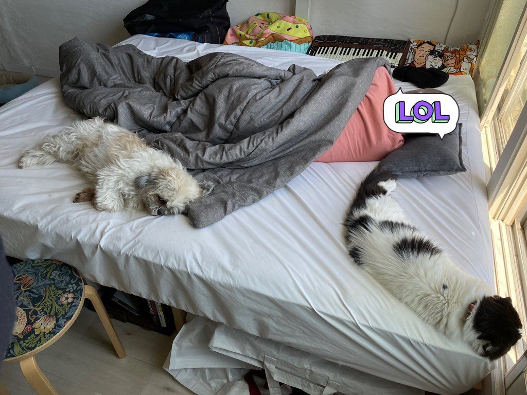 ハサミで切るぎりぎりまでは、うっとりくっついてくれているのに、いざカットしようとすると顔をそむけて、目に傷をつけないように細心の注意を払いながらカットしました。