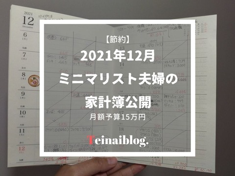 【ミニマリスト2人暮らし 家計簿公開】2021年12月の生活費は約15万円 2021年12月26日 今月から1ヶ月の生活費15万円という節約生活をはじめました。夫婦共に会食(忘年会)があったり、クリスマスプレゼントを贈りあったりと、何かとものいりな師走ですが、14万7481円と、どうにかギリギリで予算を達成することができました。ということで我が家の2021年12月の家 ... 続きを読む