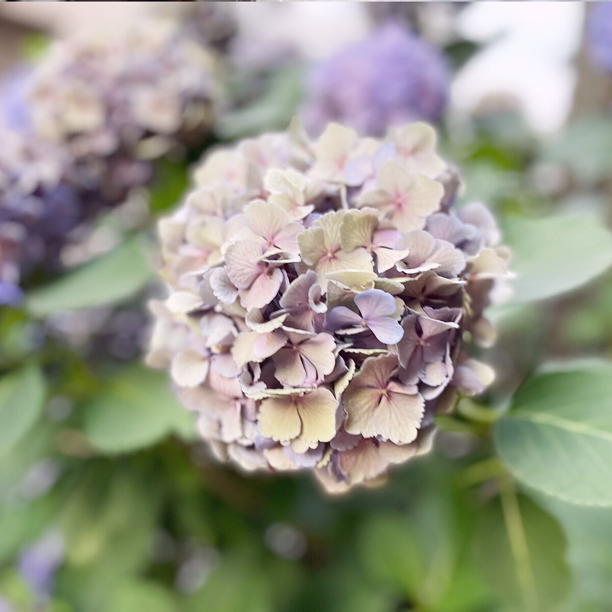 6月初旬の咲いたばかりのみずみずしいアジサイよりも、6月のおわりから7月にかけての枯れかけたアジサイの色合いの方がニュアンスがあって好きです。