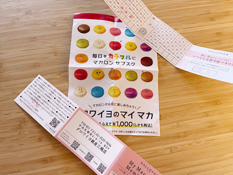毎日通って、34個もらえば7,718円分のマカロンを1000円で食べられるということなので、つまりは6000円以上お得です。