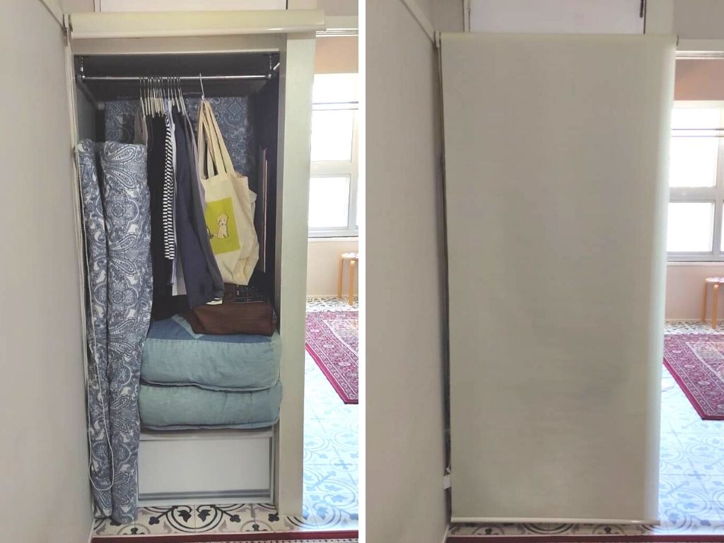 クローゼットの扉は撤去ロールスクリーンでゆるく隠す